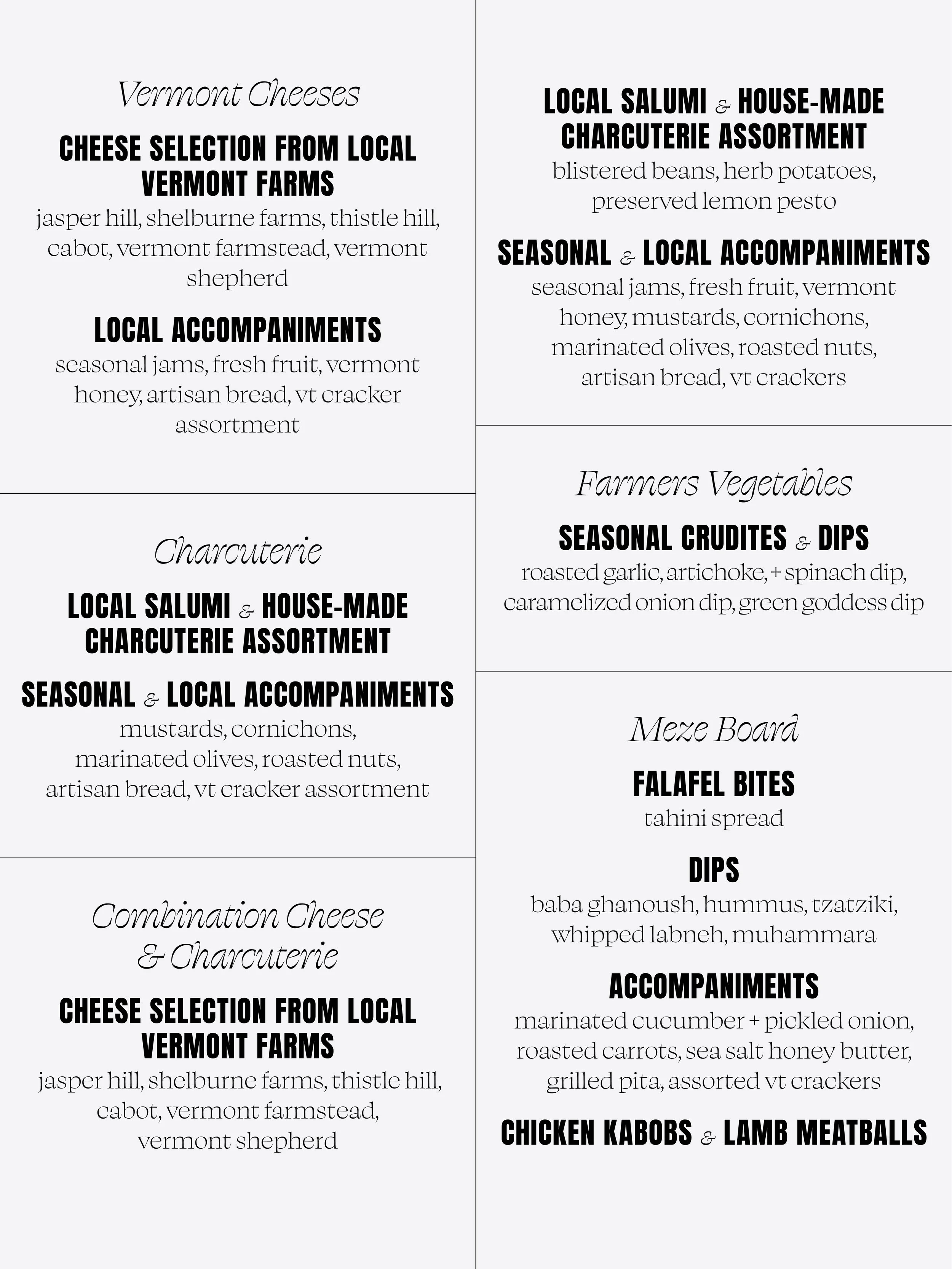 Cloud 9 partners with local farms across Vermont, preparing fresh, seasonal menus that celebrate the region’s abundance and the farmers who make it possible. This commitment to responsible sourcing, paired with thoughtful service and years of culinary expertise, ensures that every event worth celebrating is unforgettable.